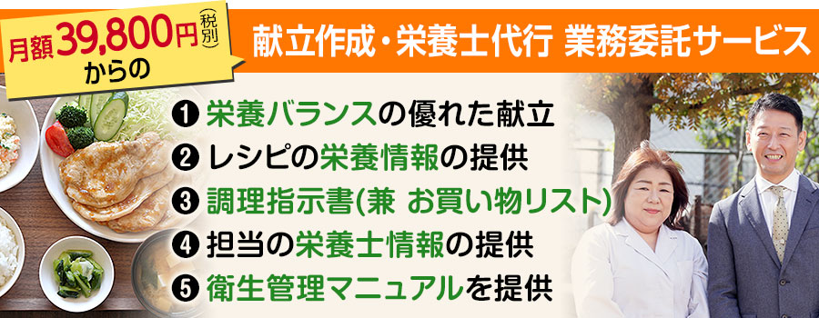 月額39,800円(税別)からの「献立作成・栄養士業務代行(委託サービス)」