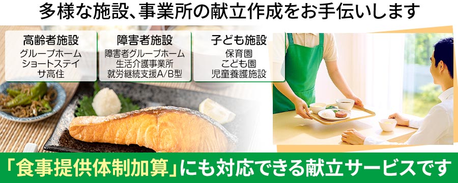 福祉施設さまの「食事提供体制加算」の要件にも対応できるサービスです