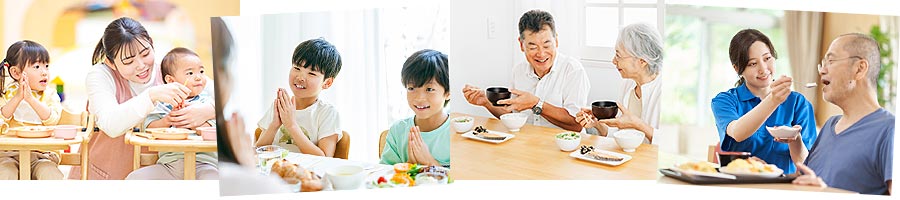 当社では、こども、そして障害をお持ちの方から高齢者まで、多様な方々の健康と笑顔を支える献立作成代行サービスをご提供しています。